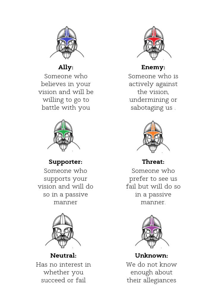After mapping out your battlefield, there are 6 statuses to defining allegiance to the vision.