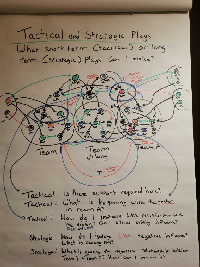 Now with a fully formed visualisation of your battle map, you will be able to see potential tactics you can use in order to improve the surrounding environment.A tactic is a short term, local move. For example, by using the influence we have with a senior stakeholder, we may be able to indirectly influence a person which could either reduce their impact on us or reduce their threat level.